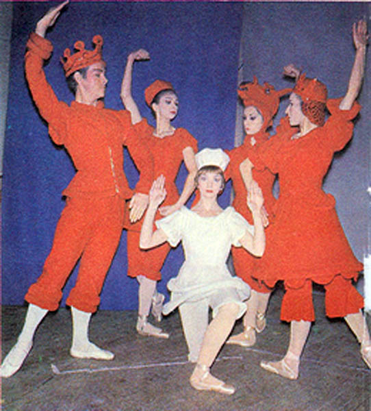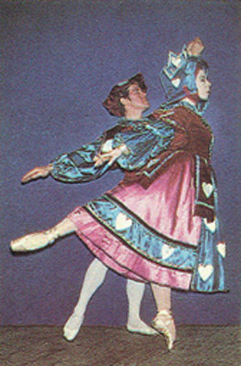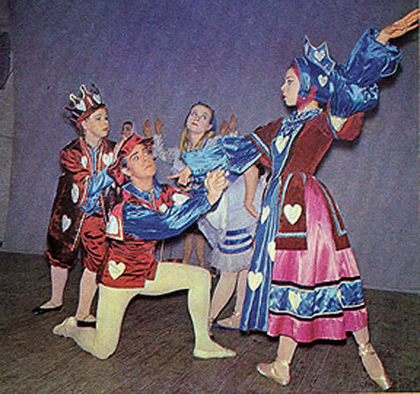 Photo Left: As the Red King in "Alice" Photos Right: As the Knave Of Hears in “Alice” On Tour With Ballets Minerva I got my first taste of the British class system when I first boarded that coach and began to take a seat beside the leading ballerina who always sat in front. She quickly put me in my place by telling me my seat was in the very back. I was not only a newcomer but a foreigner as well, and an American to boot. In each city, the five founders stayed in the best hotels while the rest of us were assigned to cheaper digs. I didn’t mind. I was enjoying touring and the chance to see all of England at close range. Once backstage, Eddie showed me his triple tour en l'air. He just jumped up, without any preparation or warm-up, and spun around three times. As any male ballet dancer will tell you, the skill to do a double tour in the air must be guaranteed, at least to one side. I could do doubles to both sides for sure, but a triple is a feat I had never seen before, except perhaps in figure skating. Eddie must have really been unique doing this. These tours to various cities