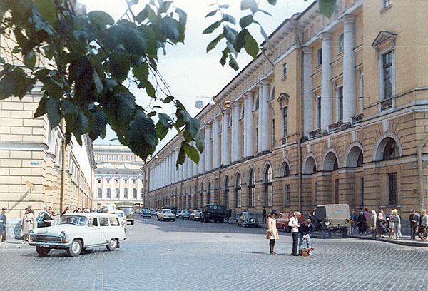 Strangely, Volodya seemed to have plenty of time to show me around Leningrad. I really don’t know why he latched on to me. At first he thought I was Italian as I was carrying an Alitalia flight bag. In a way I felt a bit lucky to have a guide and someone to practice Russian with. He was never allowed into my hotel as for some reason it was off limits for him. I had to meet him outside, and out of courtesy as I would often rather be alone. He also had a lot of friends. They usually hung out on the Nevsky Prospect at “Gostiny Dvor”, (which means literally; The Guest Yard) but it was a poor Soviet idea of a Mall. It is still there but now very chic and expensive. He introduced me to some of these friends who also knew not a bit of English except the word “Sachmo”, meaning; did I know Louis Armstrong, the American black singer who they must have heard on records. I got lost several times on my own by wandering and taking trains outside the city but there was always someone who would kindly give me directions, or even personally escort me back to my hotel. Soviet citizens were very kind and hospitable.