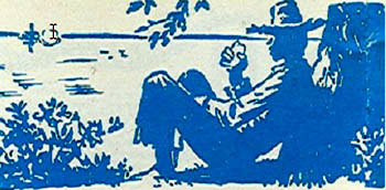 A view of Camp Minnowbrook. Boat house on left, main house on right.