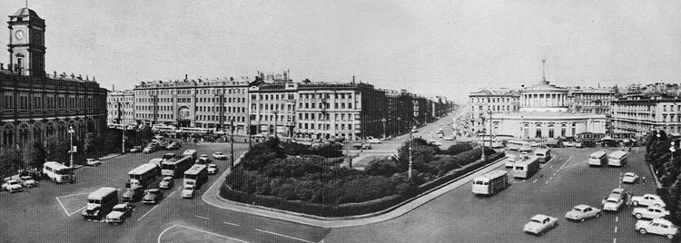 Photo: The Octiabrskaya Hotel, Leningrad You couldn’t shut it off either but you could at least turn down the volume. I didn’t mind as I took it as an opportunity to learn more of the Russian language. There were wonderful afternoon radio shows for children, very much like the ones I listened to as a boy; Dick Tracy, Captain Midnight, The Lone Ranger, but these were mainly stories about children participating in the October Revolution of 1917 and a fascinating one about a girl and a friendly robot in Mongolia that I found especially interesting. This was 1969. The Soviet period was at its peak and Leonid Brezhnev still in power. The door to my utilitarian room had a large and heavy key. Each time I went in or out I had to pay a visit to the ‘dvornaya’ [lady caretaker] who sat unbudging at her desk. There was one on every floor. My phone rang constantly with Soviet citizens searching for their visiting friends. I don’t know why I didn’t just find a small apartment by myself. The hotel restaurant where I took all my meals was not to be believed. Any table I sat at turned out to be the wrong one, the ‘right’ one always rudely pointed out by an officious waiter along with mumbled curses. I could only guess it had something to do with assigned sections. Then there was the even more disagreeable service. A friendly Canadian lady who often sat at my table and who spoke far better Russian than I, made continuous complaints about the service but it was all to no avail. The food had every other foreign guest complaining but I didn’t mind the food at all. I happen to like black bread, beets and cabbage. It was then the time of ‘Byeliye Nochi” [the White Nights] a period when it never really gets dark. From my hotel window I could watch young lovers walking hand in hand at any hour of the night and I was immediately struck by the beauty of this old city.