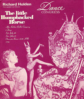 I was also staging Petipa’s “La Bayadčre” for San Francisco, Tampa, Florida, Birmingham, Alabama, Florida State University, Salt Lake City, Toronto, Canada. I was on a roll that never seemed to stop. The Humpbacked Horse I chose “Humpbacked